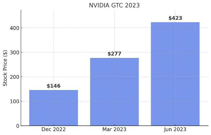 GTC 2023 전후 NVIDIA 주가 변동