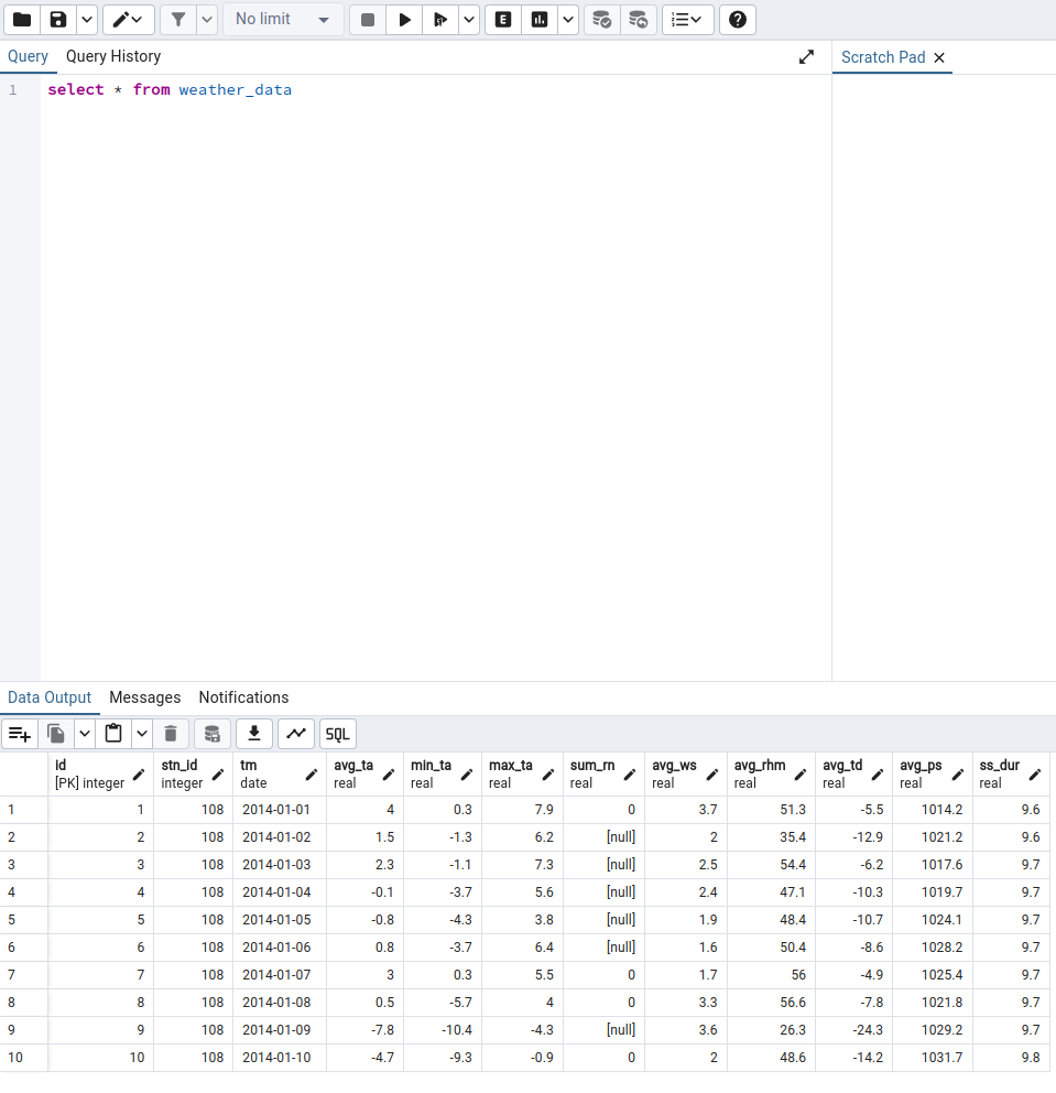 10년치 기상 데이터라면 수십 GB 이하로 예상이 되기 때문에 오픈소스인 PostgreSQL이나 MySQL으로도 충분히 감당할 수 있다고 생각하였습니다. 또한 구조화된 스키마를 가지고 있어, 각 지역 및 날짜별 기상 데이터를 정리할 수 있을 것이라고 판단했습니다. 그리고 PostgreSQL이 최근 각광받고 있다는 점때문에 PostgreSQL을 선택하였습니다.