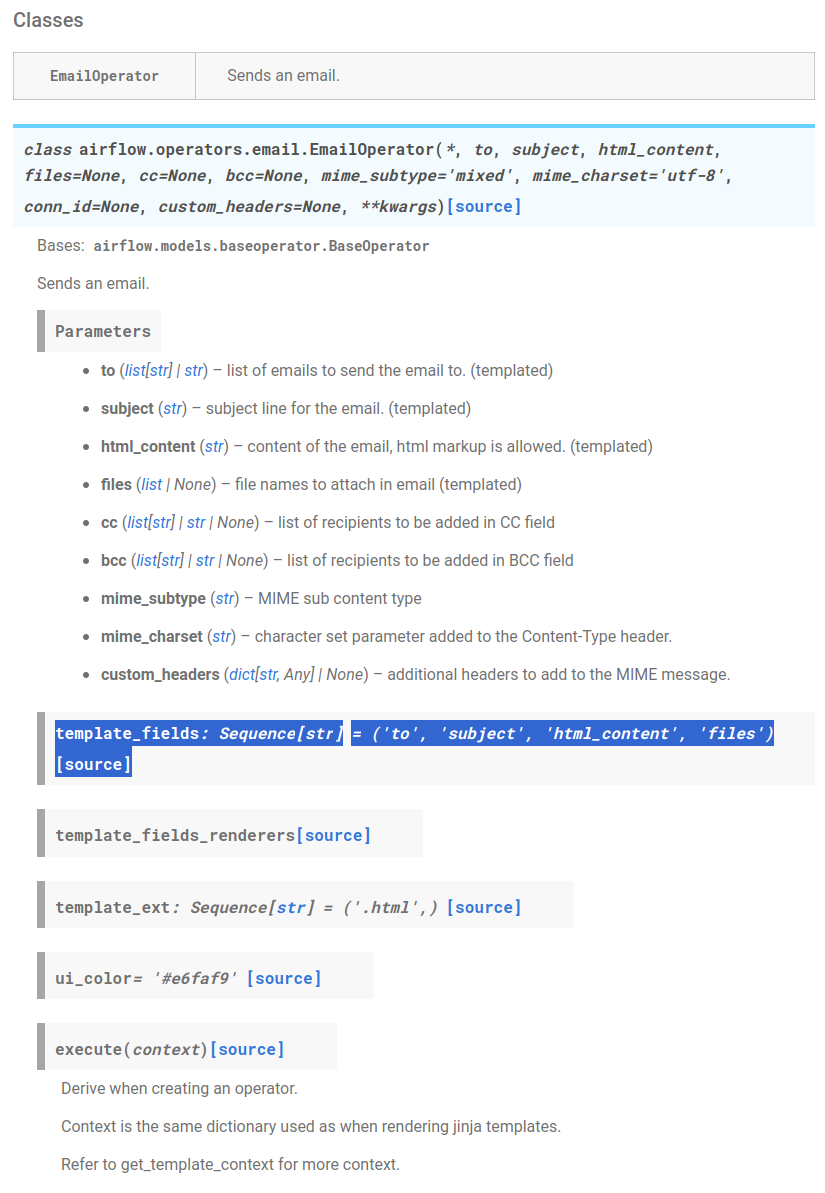 다양한 오퍼레이터를 사용하면서 xcom data를 어떻게 사용하는지 궁금하다면, 그 오퍼레이터가 가지고 있는 파라미터 중에서 template 문법을 쓸 수 있는 파라미터인지 공식문서에서 확인을 하고 파라미터에 대한 내용을 작성하면 된다.
